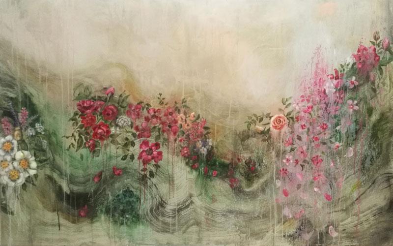 Onde fiorite | 130x81cm | oil and acrylic on canvas | 2020